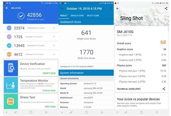Galaxy J610G J6 Plus работает под управлением ОС Android 8.1 Oreo с оболочкой Samsung Experience 9.5. В настройках системы можно включить разблокировку по лицу, работает она только при хорошем освещении и то достаточно медленно. Присутствует поддержка голосового ассистента Bixby и возможность устанавливать приложения напрямую на флешку. Также имеется функция Emotify, позволяющая создавать цифровые аватарки в чатах, что-то вроде Emoji от Apple, девушкам и детям, скорее всего, это будет интересно.