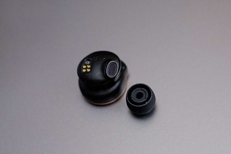 На внутренней стороне находится контакты зарядки, которых почему-то четыре, несмотря на то что в кейсе их только два. Там же расположен датчик приближения, необходимый для работы автопаузы. Apollo Bold останавливают воспроизведение при извлечении из уха и возобновляют, когда вы возвращаете их назад. Реагирует датчик очень быстро и без ложных срабатываний – тут однозначно зачет.