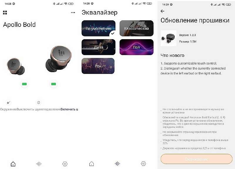 Софт позволяет смотреть заряд каждого из наушников по отдельности, включать/отключать шумодав и абмиент-мод, а также приносит три принципиально важные возможности: