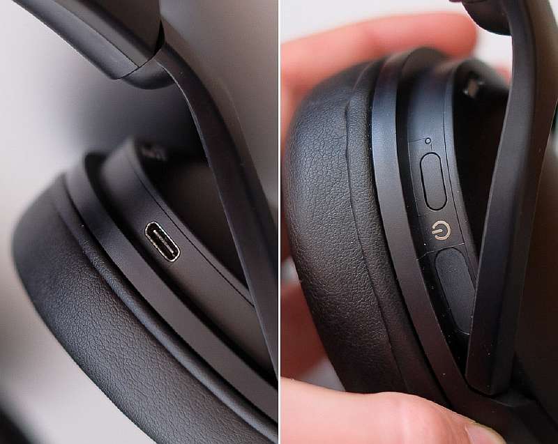 Заряжаются Q10 через порт Type-C, который спрятан под креплением оголовья на правой чаше. Там же находится большая кнопка включения и светодиодный индикатор состояния наушников.