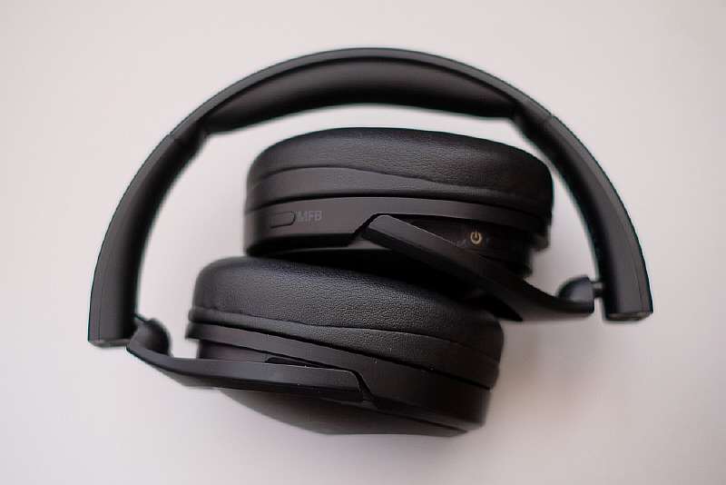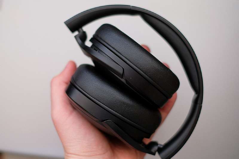 Второй положительный момент – грамотная складная конструкция, подобную которой Sony использует в своих флагманских WH-1000X. В сложенном состоянии Q10 помещаются в боковой карман зимней куртки, что позволяет везде носить их с собой. А так как чаши поворачиваются на 90°, наушники можно удобно расположить на шее во время перерывов в прослушивании.