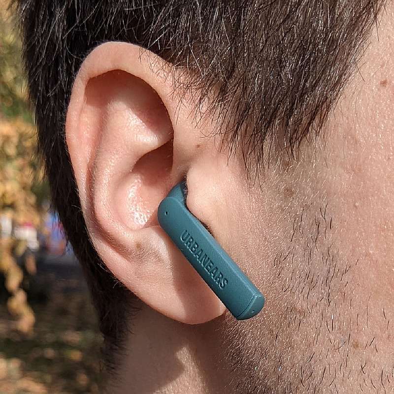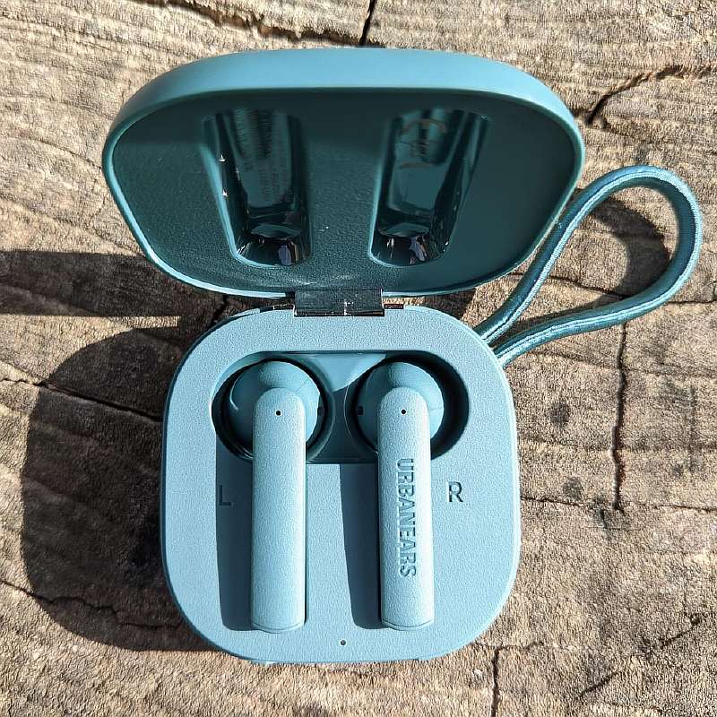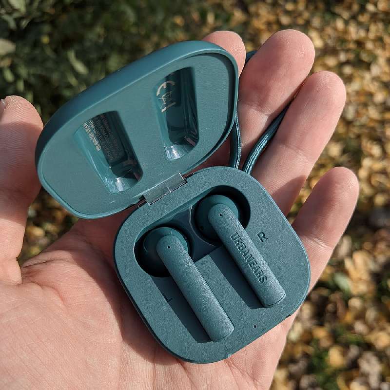 Обсудим это всё именно в таком порядке: сначала – дизайн. Мы говорим о AirPods-подобном формате «вкладыш с ножкой», где сложно придумать что-то необычное. Но шведы смогли выделиться. У Luma необычная, плоская с внешней стороны форма ножек, и целых пять цветовых решений, некоторые из которых (как, например, доставшиеся на обзор зелёные) визуально очень красивые. Пластик наушников, в отличие от яблочного творения, матовый, что идет им только на пользу. Ещё из интересного – фирменная надпись «URBANEARS» нанесена только на правый наушник.