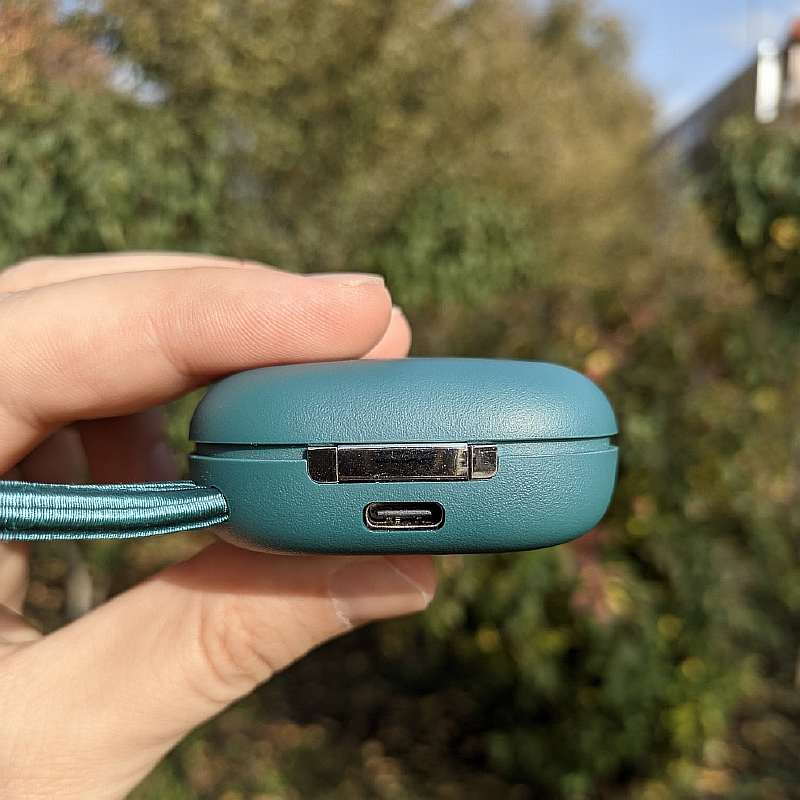 В закрытом состоянии крышка кейса лишена намёков на люфт, но в открытом небольшое дребезжание присутствует. Шарнир крышки – металлический, его подчеркивает хромированная вставка сзади, которая выглядит как интересный дизайнерский акцент. Чуть ниже расположен разъём для зарядки USB Type-C. В целом, корпус компактный, приятен глазу, и практичен в использовании.