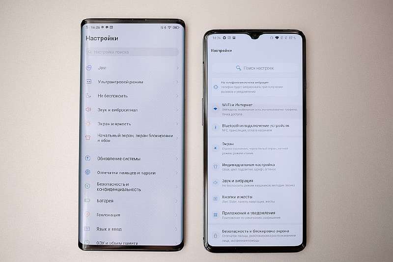 Сама POLED матрица в NEX 3 отличная, она демонстрирует резкую, насыщенную и контрастную картинку с идеальным черным цветом, а 800 нит максимальной яркости хватает для комфортной читаемости экрана в любых условиях. В настройках имеется возможность регулировки баланса белого, опция DC Dimming, темная тема и режим Always On Display, но последний, к сожалению, работает не постоянно, а только когда берешь смартфон в руки.