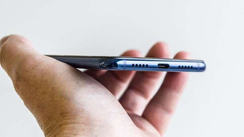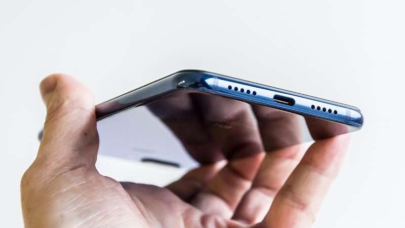 Xiaomi Mi 8 Lite достаточно тонкий смартфон, его толщина составляет всего 7.5 см. На нижнем торце находятся два отверстия динамика и порт Type-C. Миниджек можно не искать, его тут нет. Слот под карточки находится слева, он вмещает сразу две NanoSIM и карту памяти формата MicroSD.