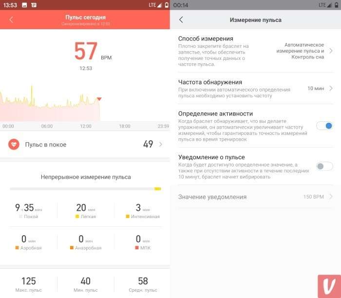 Полезная для бегунов функция уведомления о превышении заданного порога пульса в трекере присутствует лишь формально, в приложении она есть, имеется даже возможность установить верхнюю границу, но по факту ничего не работает – ни в режиме тренировки, ни при занятиях без его активации. На форумах пишут, что уведомление срабатывает только если пульс растет в состоянии покоя, но когда я отключил функцию автоопределения активности ничего не изменилось. Также в интернете можно прочесть, что Ми Бенд 4 умеет измерять артериальное давление – это не так.