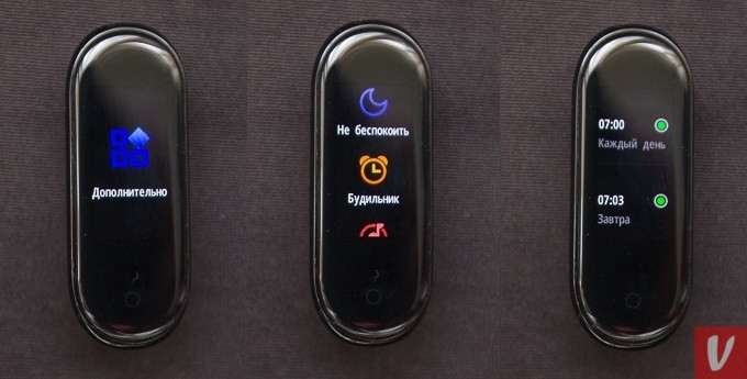 - Будильник. Время срабатывания нужно настраивать в приложении, с помощью браслета можно лишь активировать один из трех предустановленных будильников.