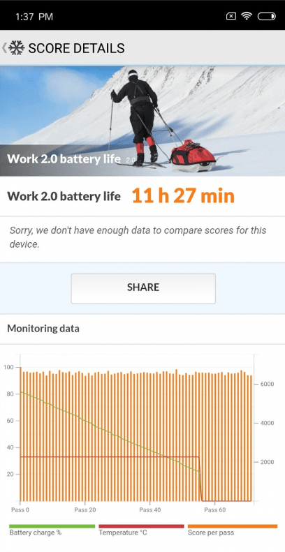Смартфон Xiaomi Mi8 SE укомплектован несъемным аккумулятором на 3120 мАч, который совместно с энергоэффективным процессором и AMOLED экраном обспечивает нормальную автономность устройства. Как и большинство современных смартфонов Mi8 SE выдерживает день работы в смешанном режиме эксплуатации. В тесте PCMark гаджет продержался 11 ч. 27 м, это достойный результат.