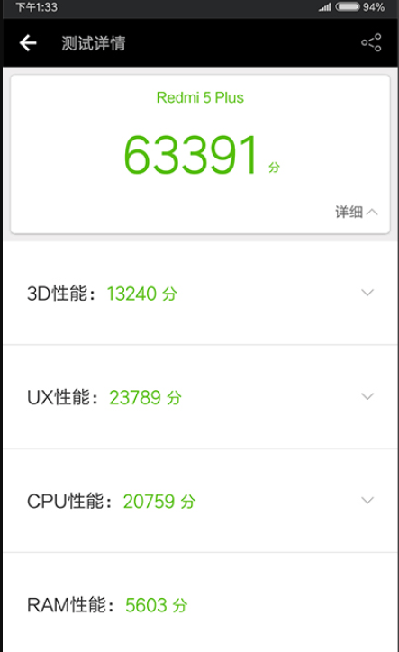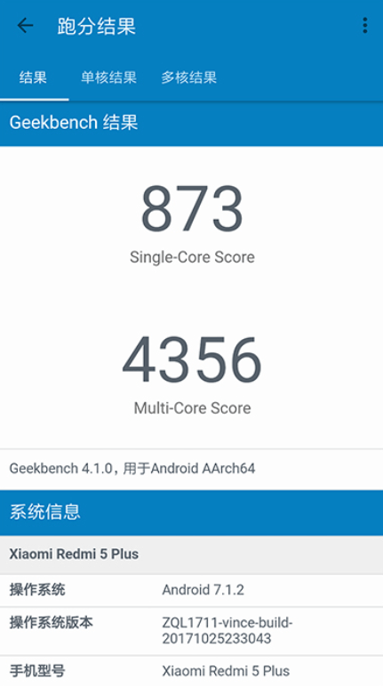 Redmi 5 Plus набирает около 63 тыс. попугаев в AnTuTu Benchmark, и 4356 / 873 балла в многоядерном и сингкоре GeekBench’a соответственно. Примерно такие же результаты демонстрирует сравнимый по стоимости с героем нашего обзора Meizu M6 Note, процессоры в них аналогичны.