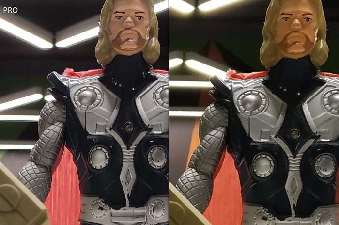 Преимущество в детализации сильнее проявляется при съемке в условиях недостаточной освещенности, взгляните на текстуру плаща и проработку лица Тора.