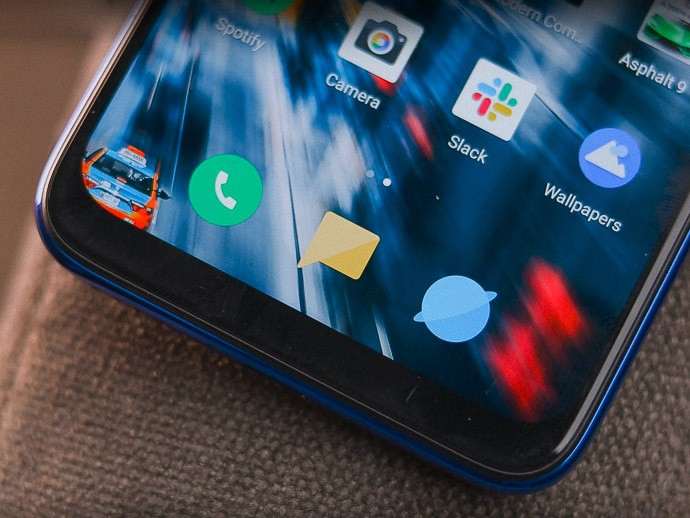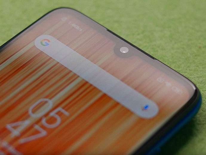 Лицевую панель занимает 6.3 дюймовый экран, покрытый стеклом Gorilla Glass 5 с неплохим олеофобным слоем. Каплевидный вырез вмещает в себе 13-мегапиксельную фронталку и датчики освещенности/приближения, над ним идет тонкая полоска разговорного динамика. Соотношение экрана к корпусу составляет 81.63%, к примеру, у доступного Galaxy A30 этот показатель равен 85%, так что работать есть над чем.
