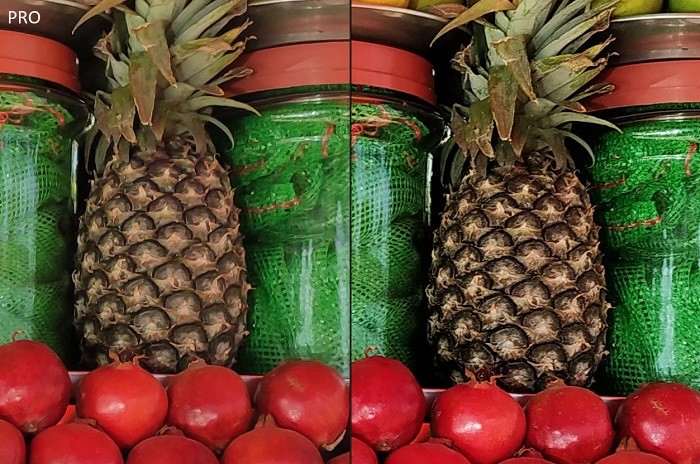 Разница в детализации слабо заметна если не кропать картинку, но при увеличении становится заметно, что текстуру объектов лучше передает RN7 Pro .