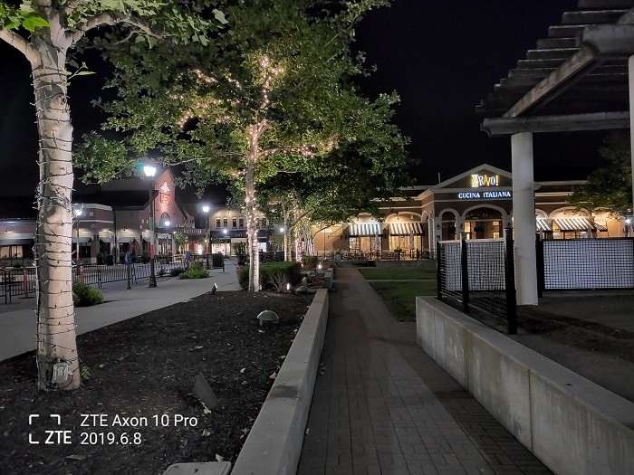 Чтобы хорошо снимать на Axon 10 Pro ночью вам потребуются крепкие руки, поскольку оптической стабилизации тут нет, и фотографии нередко выходят смазанными. Для сложных условий предусмотрен специальный режим, который работает довольно неоднозначно. Алгоритмы не пытаются сделать из ночи день, как у Huawei и Google, а улучшают цветопередачу и вытягивают из теней больше деталей. В результате изображениям серьезно не хватает резкости, но в целом выглядят они не плохо, и для отправки в соцсети вполне годятся.