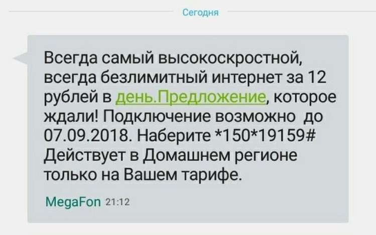 При попытке сменить оператора с сохранением номера абонент получает сообщение, где сообщается как подключить опцию. Стоимость безлимитного интернета составляет 12 рублей в день, более детальной информации об ограничениях пока нет.
