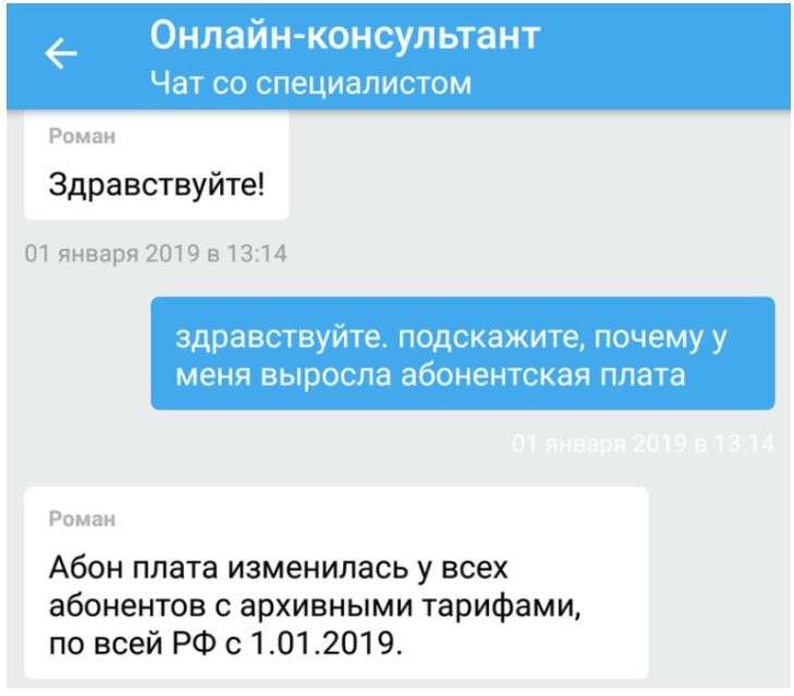 На поступающие вопросы от абонентов сотрудники поддержки Tele2 отвечают, что абонентская плата с 1 января 2019 года действительно увеличилась для всех архивных тарифов.