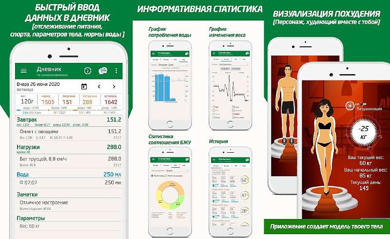 Естественно, все подсчеты программа проводит автоматически, попутно выдавая советы по сбалансированному питанию. Ваш личный прогресс заносится в дневник, так что вы легко сориентируетесь, сколько точно скинули или набрали в любой момент времени. За успешное соблюдение диеты будут начисляться еще и награды, которые здорово мотивируют совершенствоваться дальше. Неудивительно, что отзывы у программы самые положительные.