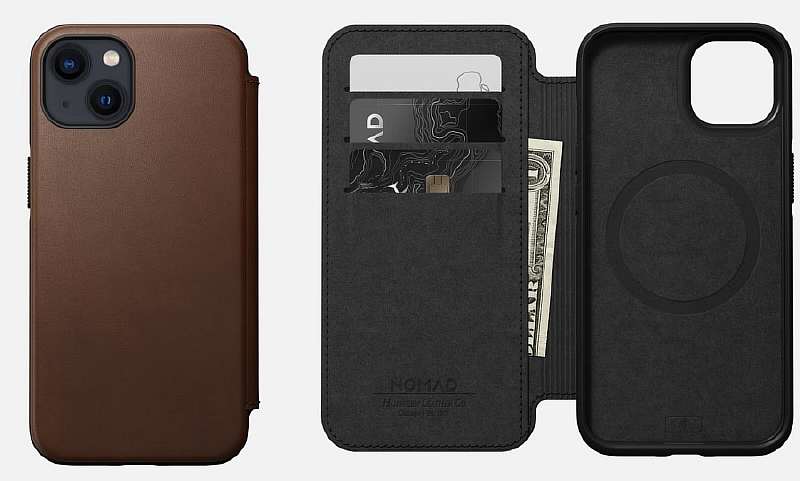 Кожаный чехол-книжка Nomad Modern Leather Folio отличается от конкурентов. Раскрыв чехол, можно обнаружить, что он с карманом, да еще и не одним. Внутрь легко поместятся бумажные купюры и несколько банковских карт. Получается защита для смартфона и кошелек в одном лице.