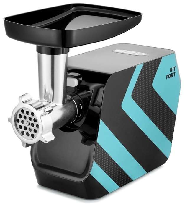 У российского бренда Kitfort неплохая бытовая техника в принципе, и в рейтинг лучших электромясорубок КТ-2106 попала не ради поддержки отечественного производителя. Эта модель работает очень тихо и плавно, у нее яркий дизайн с интересной полосатой расцветкой, компактный размер и длинный шнур, который при необходимости удобно прячется в корпус.