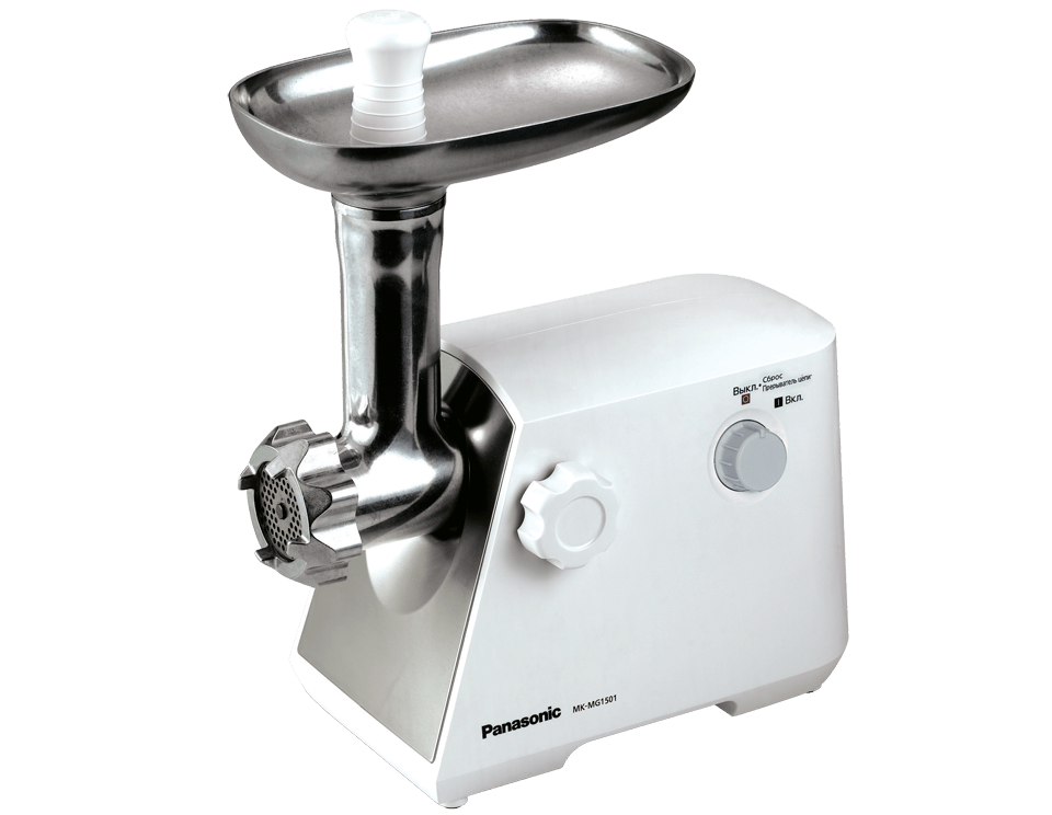 Глядя на характеристики электрической мясорубки Panasonic MK-MG1501WTQ, не очень понятно, что она делает так высоко в топе, и за что производитель требует почти 9 тысяч рублей. Ведь у этой модели всего 240 Вт номинальной мощности, в комплекте всего 3 диска для фарша, а дизайн не похож на премиальный от слова совсем. Ответ кроется в одном слове — надежность.