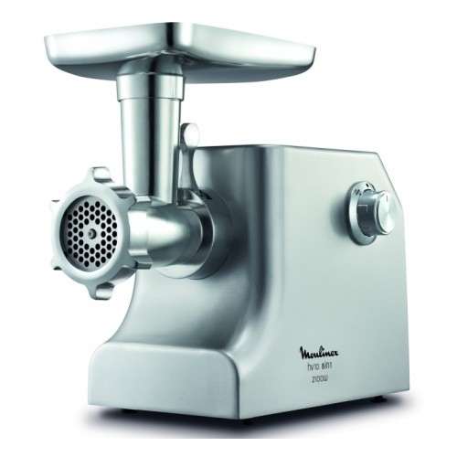 Moulinex ME 858D32 — отличный мясорубка для ценителей более мощных и основательных устройств. У нее полностью металлический корпус, лоток и начинка, включая посадочные места шестерен, вал мотора и соединения шнековой части с корпусом мясорубки. Пластиковые только шестерни редуктора. Заявленная производительность — до 5.5 кг фарша за минуту, 800 Вт номинальной мощности делают свое дело.