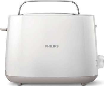 Первая модель, открывающая обзор тостеров – сверхпопулярный Philips HD2581/00. Это очень недорогой, но при этом стоящий вариант. Компактный, с симпатичным белым корпусом, поддоном для крошек, с 2 регулируемыми по размеру отделениями и подставкой для разогрева булочек – по описанию и не скажешь, что это бюджетник.