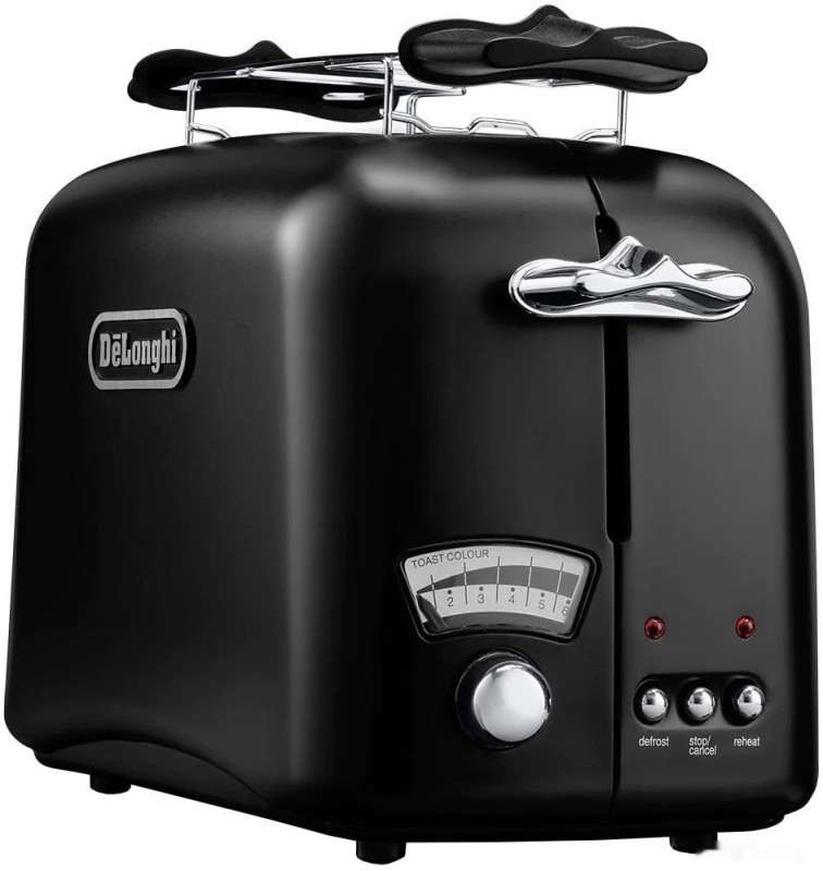 Красивый тостер с ретро-дизайном, доступный в черном и нескольких ярких расцветках. Для своего ценника имеет не очень высокую мощность (800 Вт), но серьезным минусом это не назовешь. А вот хлипковатый рычаг так и просит нажимать его аккуратнее: накладка широкая и выполнена из пластика, хотя сам корпус здесь металлический.