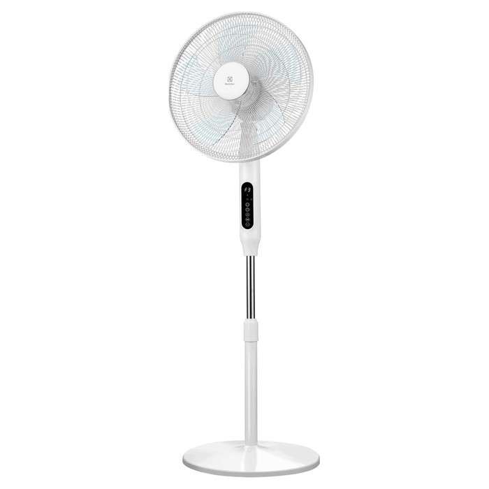 Хороший пример грамотного сочетания дизайна, простоты и функциональности от Elextrolux. Здесь широкие лопасти, но в то же время компактная утяжеленная подставка, качественный пластик, удобная регулировка по высоте. На корпусе стильный LED-дисплей и электронное управление, которое дополняется дистанционным пультом.