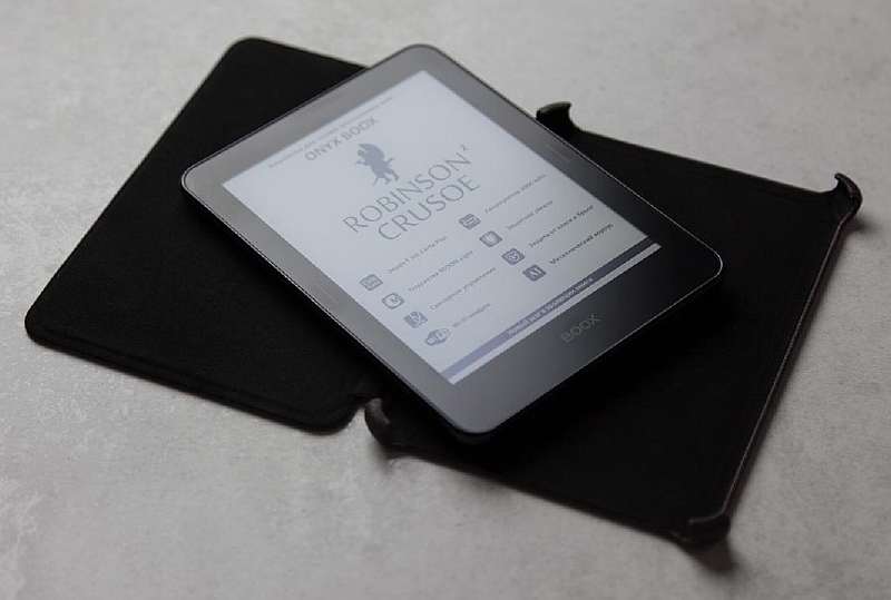 Стильная читалка от Onyx Boox, выделяющаяся на фоне аналогов металлическом корпусом с влагозащитой (да, можно читать в ванной) и защищенным закаленным стеклом дисплеем. Robinson Crusoe 2 работает на Андроид, а значит имеет практически неограниченные возможности кастомизации и настройки под себя. Клавиши перелистывания по бокам экрана тут сенсорные, при нажатии устройство отвечает тактильно приятной вибрацией. В комплекте с читалкой идет качественный фирменный чехол. Недостатки — посредственная автономность (до полутора недель при чтении по 2 часа в день) при использовании подсветки и отсутствие регулировки температуры последней.