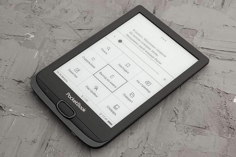 Оптимальный выбор для пользователей выбирающих простой гаджет для чтения и не желающих переплачивать за дополнительные навороты. Это самый дешевый Покетбук 2018 года выхода, в сравнении с уже рассмотренным старичком 614 Plus он быстрее, компактнее, автономнее, а также имеет подсветку экрана, который сам по себе более четкий за счет увеличенного разрешения. Пользователи хвалят легкий и компактный корпус, а также удобные клавиши перелистывания страниц. Отзывы о модели исключительно положительные, как и у всех Покетбуков присутствует трехлетняя гарантия от производителя.