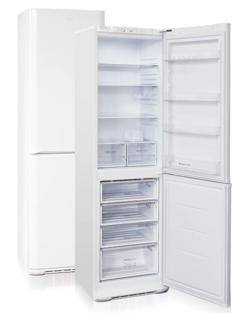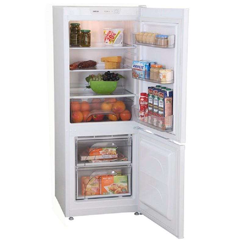 Небольшой (142.5 см в высоту) узкий (54.5 см) бюджетник с механическим терморегулятором и простым дизайном. В холодильной камере — 3 полки (у средней есть регулировка по высоте), выдвижной ящик снизу и 3 глубоких полки на двери. В морозилке — 2 выдвижных ящика. Под верхним есть металлическая решетка, если достать ящик — можно будет положить внутрь что-то крупное прямо на решетку.