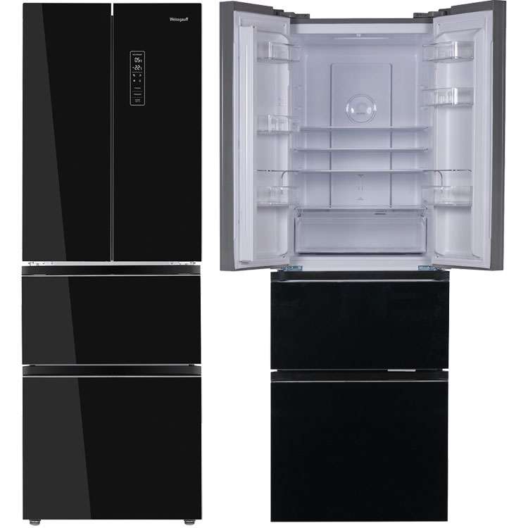 Самый большой, дорогой и вместительный холодильник нашего рейтинга. Это четырехкамерная модель средней высоты (177.5 см) с No Frost и современным дизайном. Управляется с LED-дисплея на правой двери холодильного отсека, есть индикация температуры.