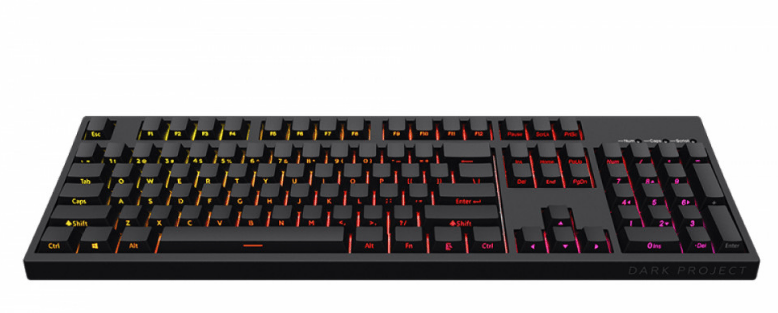 Рейтинг механических клавиатур подходит к экватору. Шестая позиция достается девайсу отечественного производителя, стремительно набирающего популярность среди геймеров. Dark Project KD1A обладает широкими возможностями кастомизации и поддерживает горячую замену переключателей, поэтому продвинутый пользователь сможет подогнать ее под любые задачи. Сравнение с конкурентами KD1A выигрывает и за счет необычной гравировки — надписи расположены на нижнем торце кейкапов.