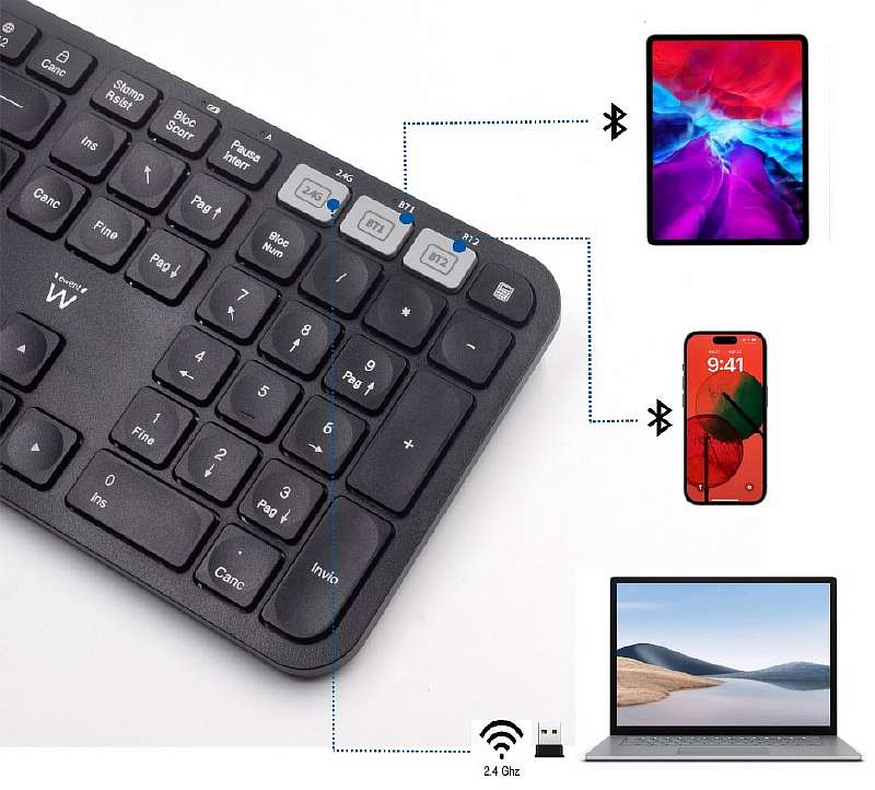 Другим вариантом является Bluetooth, преимущество которого в том, что для подключения не нужны дополнительные адаптеры. Кроме того, последние версии Bluetooth потребляют мало очень энергии и имеют неплохую дальность работы. Список совместимых устройств здесь тоже будет шире: помимо ПК, такая клавиатура подходит для Андроид – ее можно подключить к планшету, смартфону или Smart TV. Основным недостатком технологии является то, что иногда по блютусу могут возникать помехи и проблемы с задержкой.