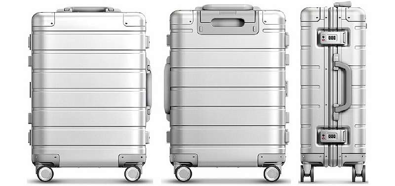 Кейс открывается на 180 градусов из любого положения, оснащен надежной фурнитурой и колесами с бесшумными подшипниками, которые позволяют легко преодолевать препятствия городской среды. Весит это чудо техники, конечно, больше пластиковых аналогов – 4.2 килограмма, зато по износостойкости и уверенности за свой багаж Xiaomi Metal Suitcase дает 100 очков форы любому конкуренту.