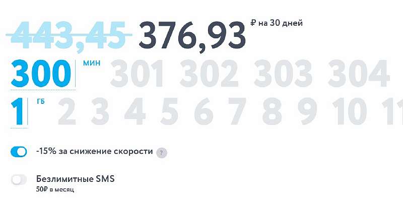 - Пакет на 300 минут звонков — 370 рублей в месяц.