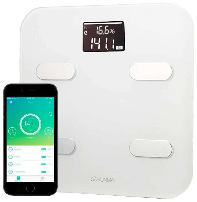 Очередная модель от известного производителя смартфонов в топе умных весов. HUAWEI с их AH100 Body Fat Scale WH есть, что противопоставить конкурентам. Лейтмотив этих умных весов — простота и лаконичность. Причем касается это как дизайна, так и мобильного приложения для них. Но простота не отменяет функциональность. Гаджет выдерживает до 150 кг, имеет точность в 0,1 кг, способен синхронизироваться со смартфоном со всеми вытекающими, считать ИМТ и процентное соотношение мышц, к жиру, костям и воде, оценивать метаболизм. Можно отметить небольшие недостатки: в комплекте с весами не идет батареек, а приложение к ним далеко на самое информативное, однако общей картины это не портит.