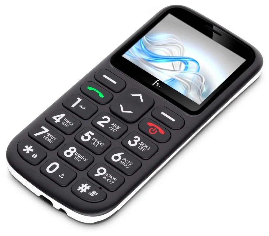 F+ Ezzy 2 можно назвать оптимальным выбором для пожилых людей. Бюджетный аппарат может похвастаться кнопками со здоровенными цифрами — удобно при плохом зрении. Цветной экран у него среднего размера — 2.31 дюйма, он яркий и контрастный. Шрифт в меню крупный, с лупой точно рассматривать не придется.