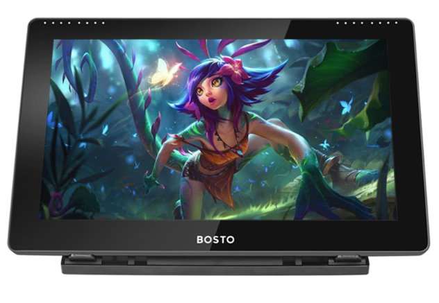 Чуть более дорогой графический планшет для тех, кому экрана в 11 дюймов маловато. Стильный глянцевый корпус Bosto 16HD украшает большой 15.6-дюймовый FullHD дисплей, есть четыре кнопки, на которые можно назначить сочетания клавиш или отдельные действия. Стилус с 8192 уровнями нажатия — более чем неплох для начинающий художников. С помощью устойчивой раздвижной подставки можно располагать планшет вертикально и под нужным вам наклоном.