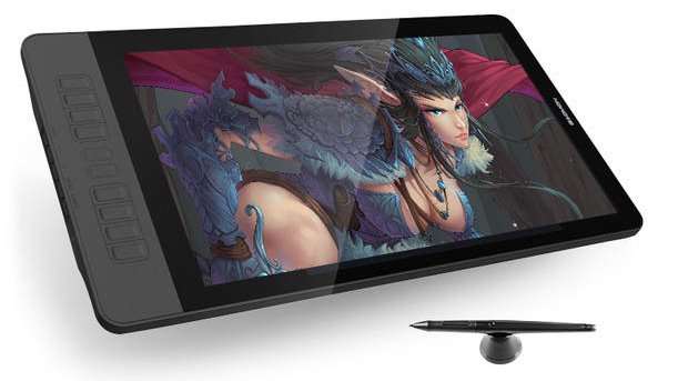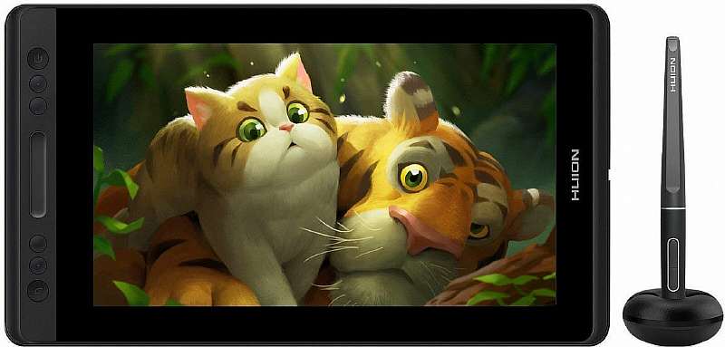 Еще один не очень дорогой китайский планшет для рисования с экраном. Huion Kamvas Pro 13 оснащен 13.3-дюймовым дисплеем — по габаритам это нечто среднее между двумя предыдущими моделями. В комплекте стандартное для продуктов такого уровня перо с 8192 уровнями нажатия. Дисплей тут ламинированный и имеет антибликовое покрытие, пользователи хвалят его за отличную цветопередачу и высокую чувствительность — штрихи ложатся ровно, с минимальным искажениями.