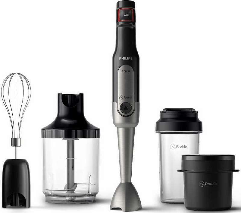 У погружного блендера Philips HR2657/90 Viva Collection есть, что предложить хозяину. Это приличная мощность в 800 Вт и измельчитель размера XL на целый литр, благодаря которым покрошить можно немалое количество продуктов одновременно. Среди других особенностей — механическое управление, ножи из нержавеющей стали, плавное переключение скоростей, турборежим, насадка-спиларайзер, венчик для взбивания, дорожный стакан для смузи на 0,5 л в комплекте. На форумах отмечают мелкие, но сугубо утилитарные недостатки вроде отсутствия резиновых подставок под чашей блендера, отчего та немного скользит. Но это, очевидно, недостаточно веская причина, чтобы не присмотреться к «Филипс» HR2657/90.