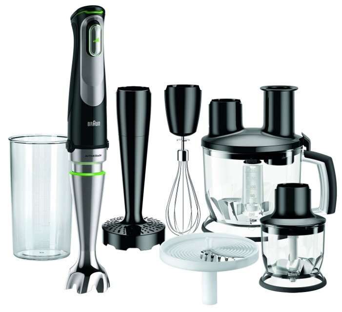 Кажется, у Braun далеко не один ответ на вопрос, какой фирмы блендер лучше приобрести. Следующая их модель чуть более мощная и дорогая — 750 Вт и 21 скорость до 13500 об/мин. Под стать этому и измельчитель — 1,5 л. Радует и число дополнительных режимов: турборежим, терка, диск для нарезки ломтиками, насадка для приготовления пюре, насадка для замешивания теста. Дополняет все это венчик для взбивания, мерный стакан на 0,5 л, насадка для нарезки соломкой (мелкая, крупная); насадка для картофеля-фри. Настоящий многофункциональный блендер, способный решить практически любую задачу, попробуйте — и вряд ли пожалеете о покупке.