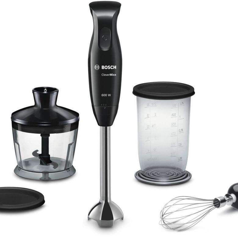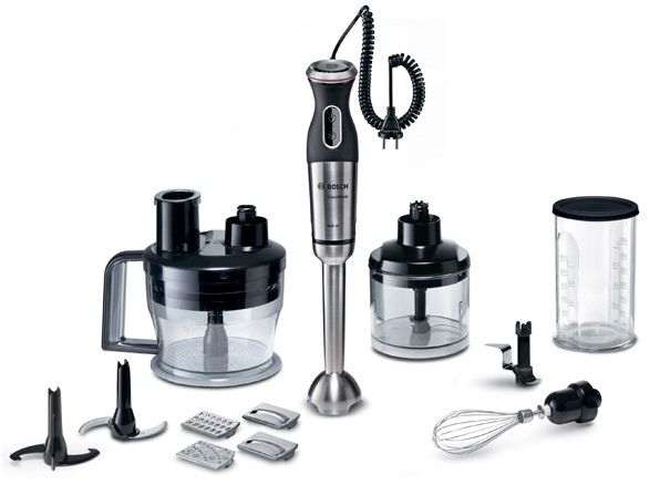 Bosch MSM 88190 — серьезная заявка на то, что у этой фирмы, лучшие погружные блендеры. Ну или одни из таких. При своих небольших габаритах имеет 800 Вт мощности, регулировку скорости в 12 диапазонах с функцией «Турбо», многофункциональную насадку-комбайн. Среди дополнительных режимов хороший набор: вышеописанный турборежим, колка льда, терка, диск для нарезки ломтиками. Дополняет все это вместительный измельчитель и корпус из нержавеющей стали, надежность которого понятна даже по фото.