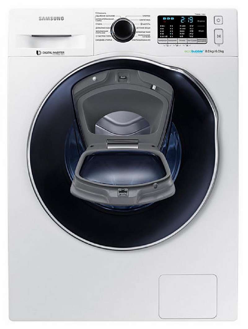 - используется функции Eco Bubble (технология «активной пены», лучше отстирывает вещи) и AddWash (дозагрузка, забытые вещи можно докидывать в специальный проем в основном люке).