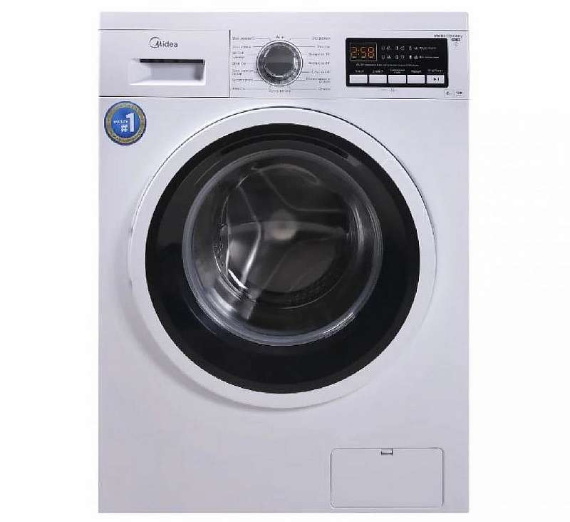 Модель посерьезнее от уважаемого китайского производителя, на мощностях которого собирается множество стиралок от А-брендов. Эта Midea и белья вмещает больше, и отжим у нее уже на 1400 об/минуту. Среди бюджетных стиралок такие характеристики встретишь нечасто, поэтому записываем это в твердые преимущества. Плюс на дисплее показывается время до конца программы, есть сигнал о завершении стирки и функция дозагрузки.