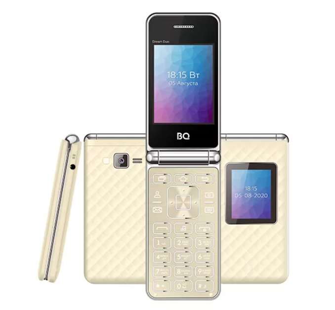 Изучая новые модели телефонов раскладушек, мы наткнулись на BQ-2446 Dream Duo. По соотношению цены и качества это очень интересное предложение. Телефон обладает необычным дизайном за счет клавиатуры из металла и необычного текстурированного пластика снаружи. Весит всего 111 грамм и имеет компактные размеры, поэтому комфортно орудовать им одной рукой смогут даже представительницы прекрасного пола. Чем не стильный аксессуар в эпоху однообразных смартфонов?