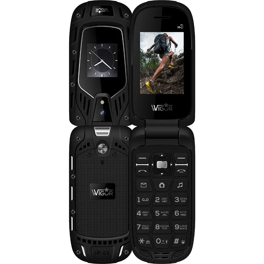 Экранов тут два: основной диагональю 2.4 дюйма и дополнительный, на котором отображаются данные о пропущенных звонках и СМС, имя того, кто звонит, часы и прочие уведомления. Кроме того, Wigor H3 способен воспроизводить радио без наушников, записывать звонки, имеет громкий динамик и держит до недели на одном заряде аккумулятора (емкость 1200 мАч). Заслуженное попадание в топ лучших телефонов раскладушек по отзывам покупателей.