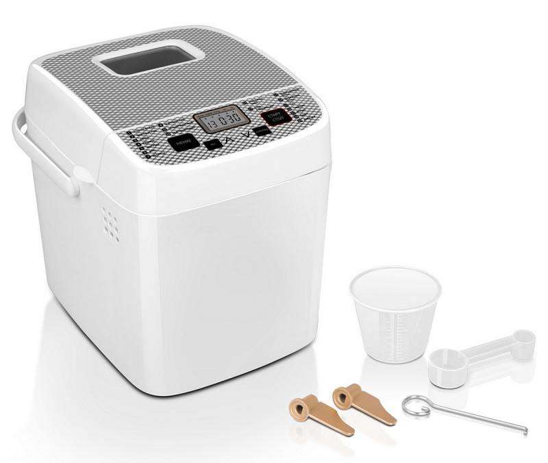 Модель довольно бодро месит тесто и час держит тепло после окончания процесса приготовления. Среди главных недостатков, пожалуй, излишний шум, который производит устройство. А еще LCD-дисплей без подсветки, информацию на котором иногда удается разглядеть только с помощью дополнительного освещения. В остальном — вполне достойная хлебопечка за свои деньги.