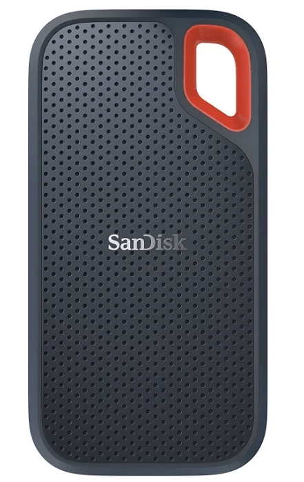 Если вы не знаете, какой внешний SSD диск выбрать, рекомендуем Sandisk Extreme Portable SSD. Он обладает неплохой скоростью записи — до 550 Мб/c, позволяющей отправить 9.3 ГБ файлов с компьютера всего за 20 секунд. Девайс имеет компактный корпус, его удобно носить с собой в сумке или рюкзаке. Бонусом является и защита от воды и пыли по стандарту IP55, если вы попадете с SSD под сильный дождь, с ним ничего не случится.
