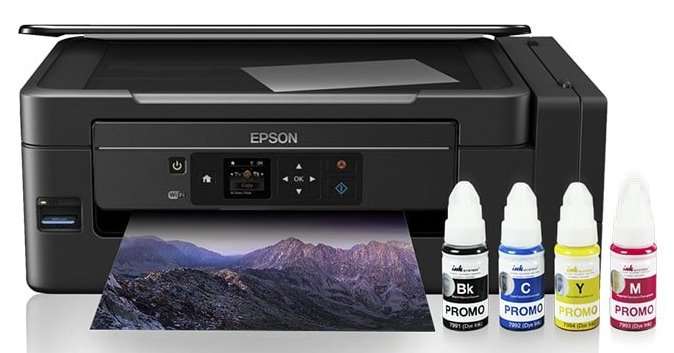 Один из лучших струйных цветных принтеров в вопросе соотношения цены и качества. В сравнении с конкурентами по ценовому сегменту данный девайс одновременно демонстрирует и высокую производительность работы при достойном качестве результата, и вполне экономичное расходование чернил, опять же благодаря наличию СНПЧ. Устройство имеет немало возможностей для гибкой настройки, так что придется покопаться в инструкции, но доступный функционал это оправдывает. Если брать цену одного распечатанного листа, то данная модель имеет все шансы возглавить список самых дешевых в эксплуатации МФУ.