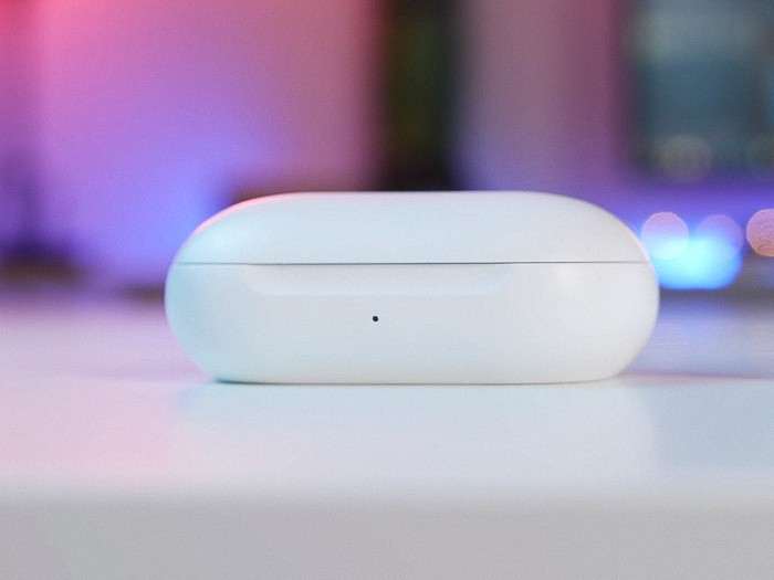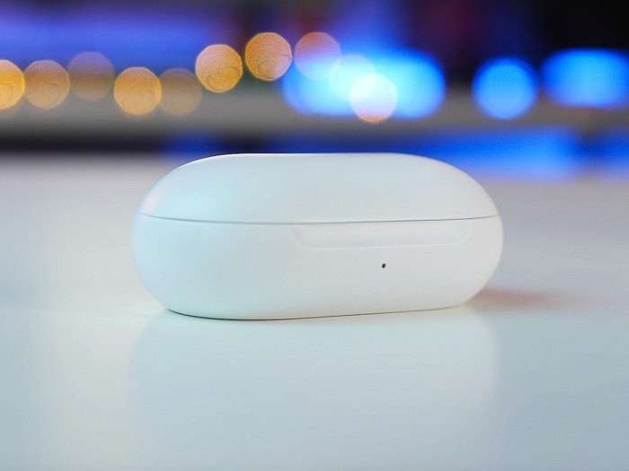 Кейс для зарядки Galaxy Buds компактен и тактильно приятен, как и сами наушники. Его размеры составляют всего 70х39х27 мм, благодаря округлой форме, напоминающий гальку, он ощущается удивительно легким в кармане. Футляр изготовлен из глянцевого пластика, который хоть и выглядит прочным, довольно быстро покрывается царапинами и потертостями.